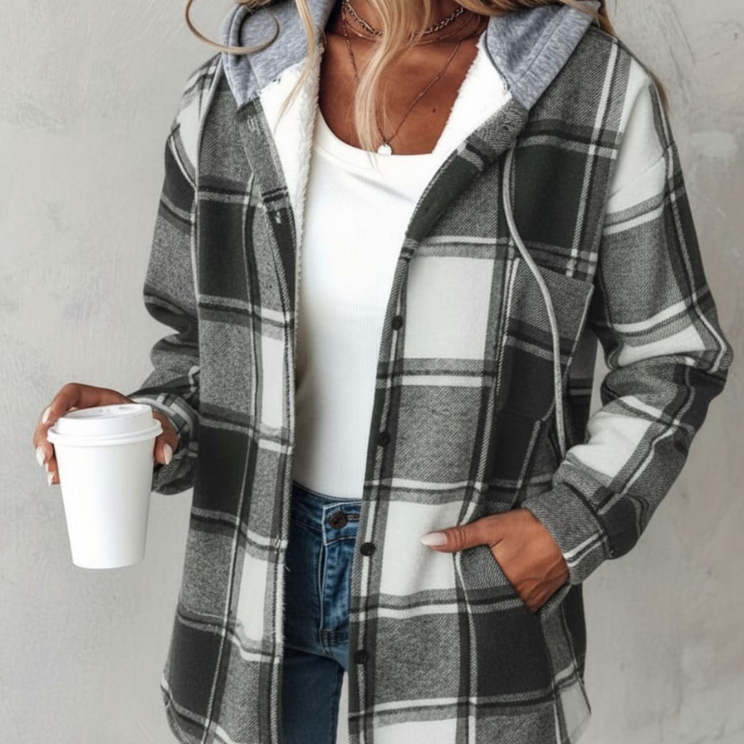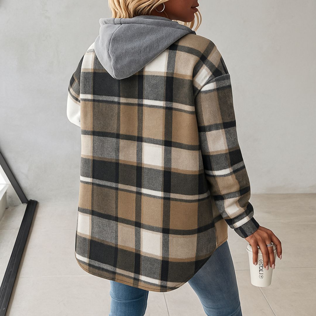 La Giacca Morbida Scozzese reinterpreta la classica fantasia tartan in chiave moderna, con una linea rilassata e femminile che valorizza la silhouette senza rinunciare alla comodità.